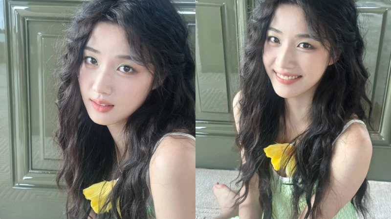 韓團IVE團員張員瑛的淺藍珠光眼影,清冷中透出一絲俏皮感。