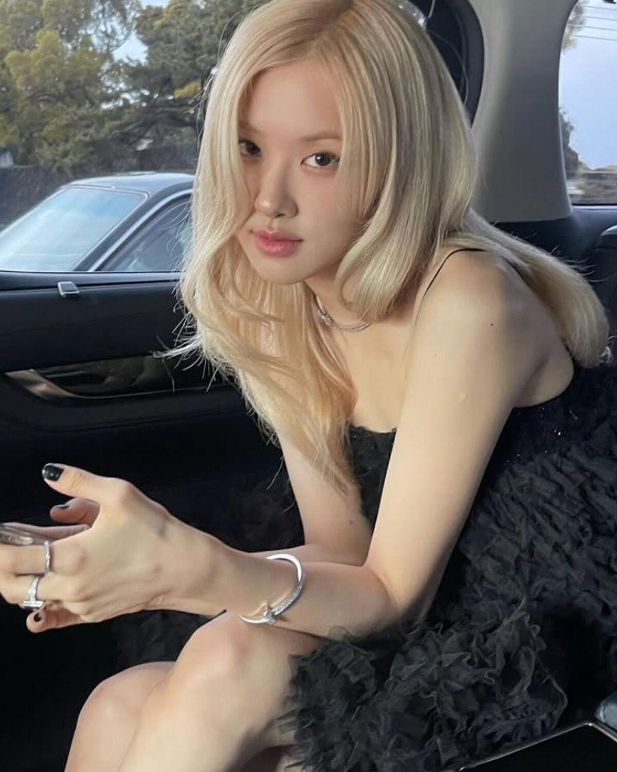 Rosé 在私下習慣畫較淡的偽素顏妝容,柔霧底妝搭配為光唇蜜看起來乾淨又溫柔。