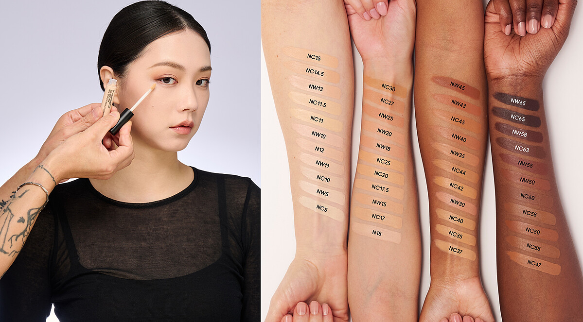 今年遮瑕重點不再是一昧地厚遮,而是強調保留肌膚原生質感,「先校色、再遮瑕」,就能用最少的量,最大化自然修飾瑕疵!M·A·C「柔霧遮瑕液」最強的就是高遮瑕、極輕薄,簡單一抹就有效遮瑕,含保濕和定妝成分的液態質地,絲滑好推超服貼,成膜後霧化柔焦瑕疵緊緊鎖妝,無論是毛孔、痘印、深溝紋路都能一隱無痕,不乾繃、不結塊、不卡紋!建議少量多次疊加修飾,提亮色可用於深溝紋路,修飾面中平整度,深色可用於鼻影、臉周輪廓,強化深邃立體感,不靠醫美也有高級立體小顏!