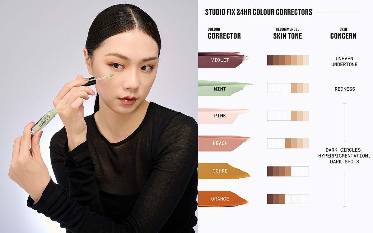 底妝自然精緻的精髓,其實在「校色」,尤其是黑眼圈、膚色暗沉或泛紅,「校色先行」就能將粉底、遮瑕輕薄化,讓底妝更完美不假面!M·A·C「超持妝24H調光校色液」推出適合冷暖膚色的6款色選,淡化色斑、平衡泛紅、中和青色黑眼圈都能輕鬆找到對應選擇!濕潤的液態質地觸膚後轉化為柔霧妝感,無論是用指腹輕點、刷具修飾都超好上手不怕失手,後續疊加底妝或遮瑕都能完美融合,長效防水抗暈、不結塊不暗沉,讓勻亮好膚質宛如天生,不信看看上妝前後BA差很多!