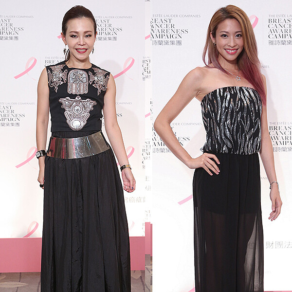 (左)鐵肺歌后 彭佳慧為雅詩蘭黛集團2015粉紅絲帶慈善晚宴獻唱,(右)台灣知名歌手 袁詠琳女士出席雅詩蘭黛集團2015粉紅絲帶慈善晚宴