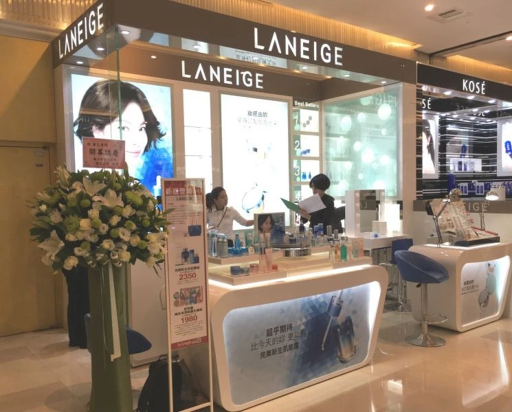 來自韓國的國民美妝品牌 Laneige 蘭芝,專櫃以藍白相間的色彩為主,讓來到這的客人覺得放鬆紓壓,來櫃上走一趟,每個人都能變身為最新潮的 K-Beauty 代言人!