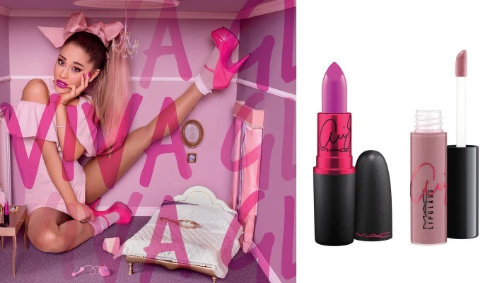 2016年金嗓小天后亞莉安娜成為VIVA GLAM薇拉葛蘭系列全新代言人,繼春夏首推聯名系列大賣後,秋季又再推出第二波商品,延續「好女孩v.s.壞女孩」的概念,亞莉安娜設計了適合每天使用的百搭唇彩色,M.A.C霧面質地搭配紫調亮桃紅色及豆沙裸色的晶亮魔唇。