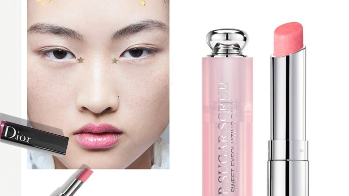 唇妝的部分,先使用全新蜜糖磨砂潤唇膏為雙唇溫和去角質,同時潤唇,接著在下唇中間輕點癮誘超模漆光唇釉#550(2017年3月1日上市)。