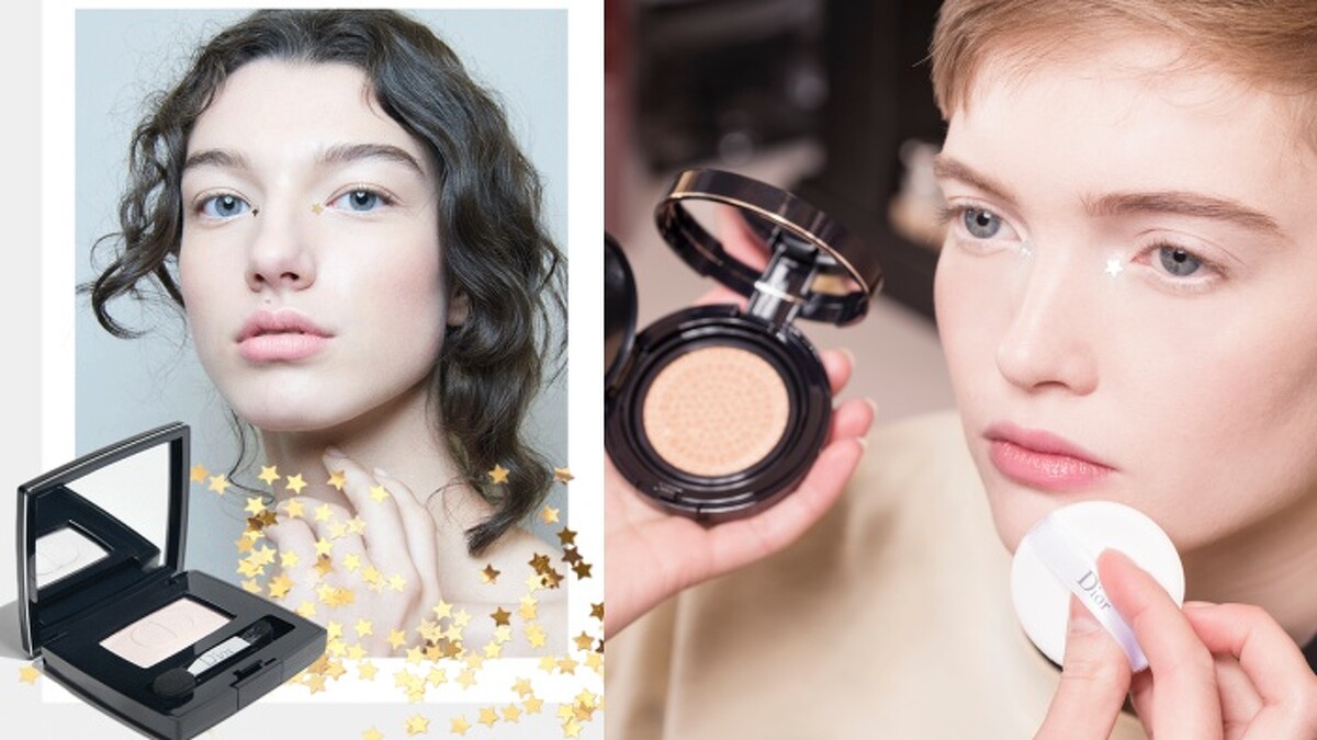 先使用超完美持久飾底乳修飾肌膚,搭配超完美持久氣墊粉餅,綻放自然清新柔霧光。腮紅則使用輕盈如玫瑰雲朵般的迪奧亮妍腮紅盤 #756和#876。最後,在眉骨、鼻樑、唇峰以輕透光空氣蜜粉餅打造立體輪廓,讓肌膚閃耀珍珠光采。