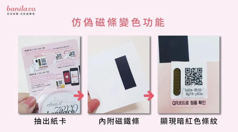 STEP 2. 根據磁鐵方向出現暗紅色條紋,即為官方正貨