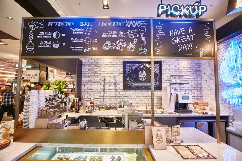 雖然是保養品牌所推出的咖啡店,但一點也不馬虎。全店採用最吸睛、最潮流的紐約設計風,保留品牌最常見的紅磚牆,更融入紐約最潮流黑白簡約設計風格。天花板內嵌紐約常見的霓虹燈與品牌歷史故事,走進去彷佛進入繁華的紐約城市中。