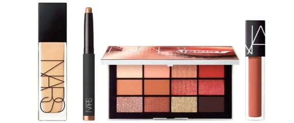 她使用的單品有:NARS極光亮顏粉底液、絲絨柔珠眼影筆(#Siros)、自戀愛羨眼影盤、以及台灣要等到7月才上市的惹火唇誘新色#Swing。