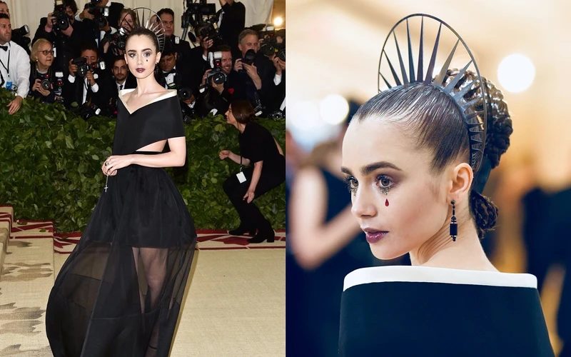 以充滿創意且前衛的水鑽淚滴眼妝,搭配紫色金屬唇妝,制霸2018 Met Gala紅毯。執掌莉莉柯林斯紅毯妝容的彩妝師Fiona Stiles也在Instagram上公開她如何打造Lily Collins的妝容。