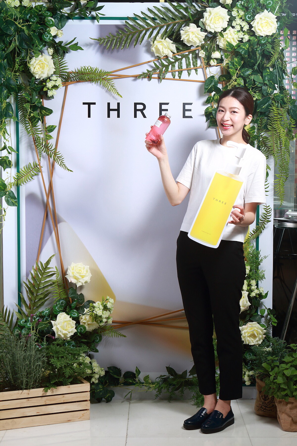 THREE還打造了一座花草牆,現場拍照打卡,再贈「原木筆組」等好禮,並有機會抽中價植NT2,700的肌能旅行組一份。
