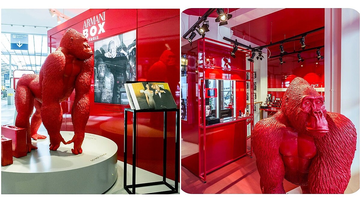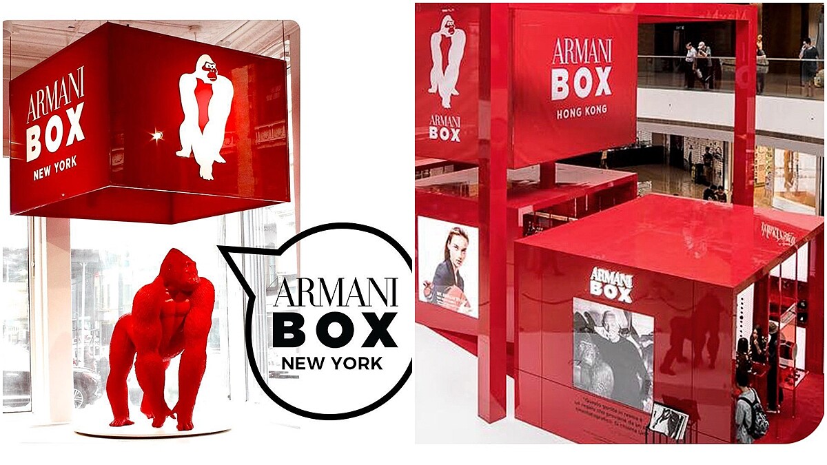 Giorgio Armani以Armani先生最喜愛的巨型紅色猩猩為主題,打造全紅色,視覺感非常強烈的ARMANI BOX亞曼尼精品美妝全球巡迴快閃店,之前已在倫敦、巴黎、紐約、東京、首爾、北京、香港等城市開張。