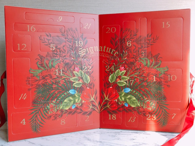 12/1苦橙古龍水9ml (聖誕限定香)、12/2烏木與佛手柑芳醇古龍水9ml、12/3羅勒與橙花沐浴凝膠15ml、12/4.英國梨與小蒼蘭古龍水9ml、12/5夜來香與白芷芳醇古龍水9ml、12/6凝霜櫻桃與丁香旅行香氛工藝蠟燭35g (聖誕限定香)、12/7伯爵茶與小黃瓜古龍水9ml、12/8藍風鈴潤膚乳霜15ml、12/9鼠尾草與海鹽古龍水9ml、12/10黑琥珀與野薑花芳醇古龍水9ml、12/11琥珀與薰衣草沐浴油15ml、12/12.牡丹與胭紅麂絨潤膚乳霜50ml (聖誕限定香)、12/13英國橡樹與紅醋栗古龍水9ml、12/14茉莉與金盞花芳醇古龍水 9ml、12/15青檸、羅勒與柑橘古龍水9ml、12/16焚香與香橼旅行香氛工藝蠟燭35g、12/17杏桃花與蜂蜜古龍水9ml、12/18夜來香與白芷芳醇潤膚乳霜15ml、12/19葡萄柚古龍水9ml、12/20黑莓子與月桂葉沐浴油15ml、12/21黑雪松與杜松古龍水9ml、12/22橙花沐浴凝膠15ml、12/23沒藥與零陵香芳醇古龍水9ml、12/24黑石榴旅行香氛工藝蠟燭 35g。