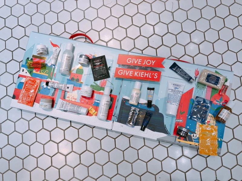 Kiehl’s契爾氏2018聖誕倒數月曆與聖誕系列一樣,與紐約藝術家Andrew Bannecker合作,以可愛的手提行李箱為概念,將價值近6000元的經典產品與旅行組通通裝進去,包含Kiehl’s最受歡迎的金盞花系列、激光極淨白系列與冰河醣蛋白保濕系列,還有品牌最熱銷三款面膜也一次收入!