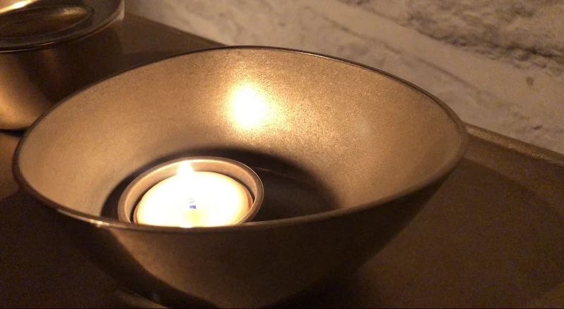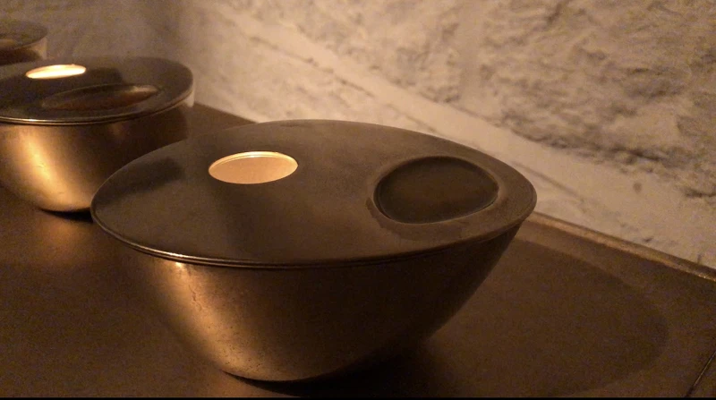 掀開「Aesop黃銅薰香座」的黃銅蓋,靠在一角的圓形凹槽正是茶燭放置位置,每一個茶燭可以點燃約4-5小時,Aesop建議每次的使用量約5-10滴的薰香油,讓燭火的溫度帶出香氣最原始的樣貌,而在暗處透出的細微幽光,寧靜和煦,默默的散發出肯定的力量。