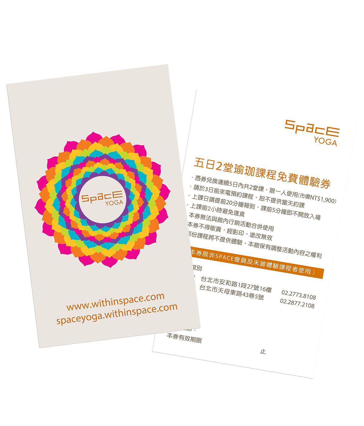 1.SPACE YOGA雙課劵(價值NT$1,900)