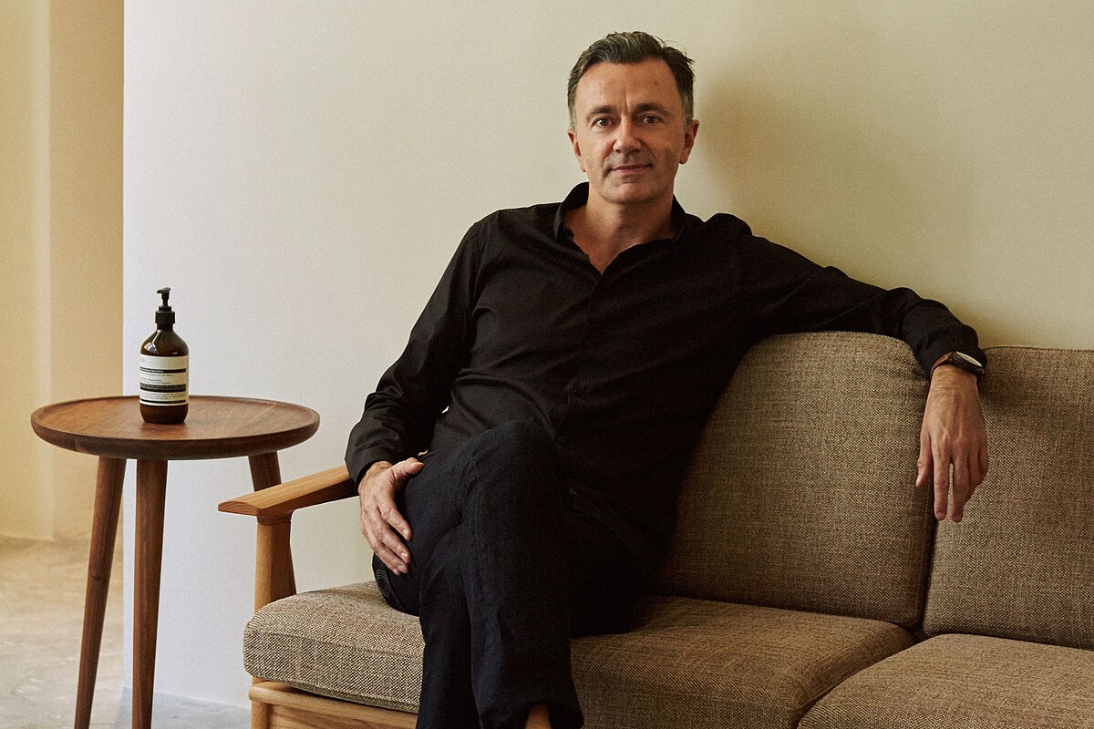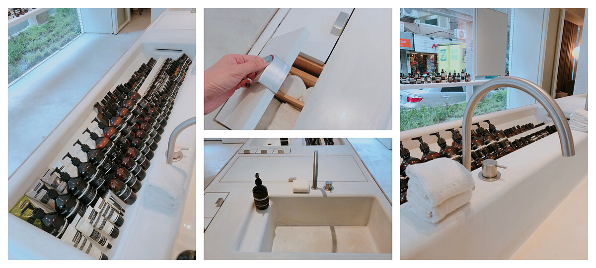 Aesop 亞洲區總經理Frederic Seiller也特別飛來台灣,他說:「我非常喜歡這個寧靜平和結合綠意的空間,尤其是夜晚的時候,它就像家一樣溫暖。我們希望你走進來,去體驗一下產品,我們一直期望可以找到這麼大的空間,就是想要給進來的人無壓舒適的自在感,我建議你們一定要使用我們的洗手枱,洗洗手,再使用早已備妥的小毛巾拭淨後,慢慢的塗抹乳液、面膜或護手霜。」