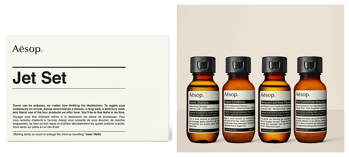 其它我還會帶的是很受大家歡迎的旅行四件組,裡面是小包裝的天竺葵身體潔膚露、橙香身體乳霜,以及洗髮精、護髮乳,用完我會帶回家重新裝填,因為這個組合的尺寸非常適當,瓶器的設計在使用上非常方便。最後我還要推薦一個旅者必備小物甦活生薑油,這是一個滾珠設計的舒壓小物,裡面有薑、薰衣草和天竺葵,當你感到頭暈不適、時差、疲倦時都可以使用,塗抹在太陽穴、手腕內側、耳後或腹部,會感覺很舒適。
