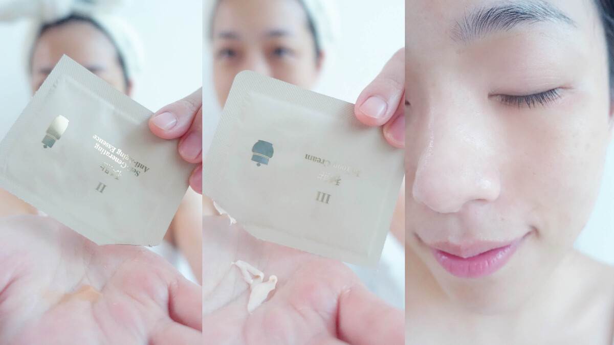 敷完面膜務必使用每片包裝附的「重生秘帖」和「重生秘帖光澤霜」的輕巧包,「重生秘帖」可以辨識每種膚齡膚況所缺乏的養份,給予各年齡層需要的救急效果,加乘保濕、抗老、緊緻功效,最後以光澤霜將珍貴韓方精華成分層層鎖在肌底,養成如白瓷般細緻的光澤肌。