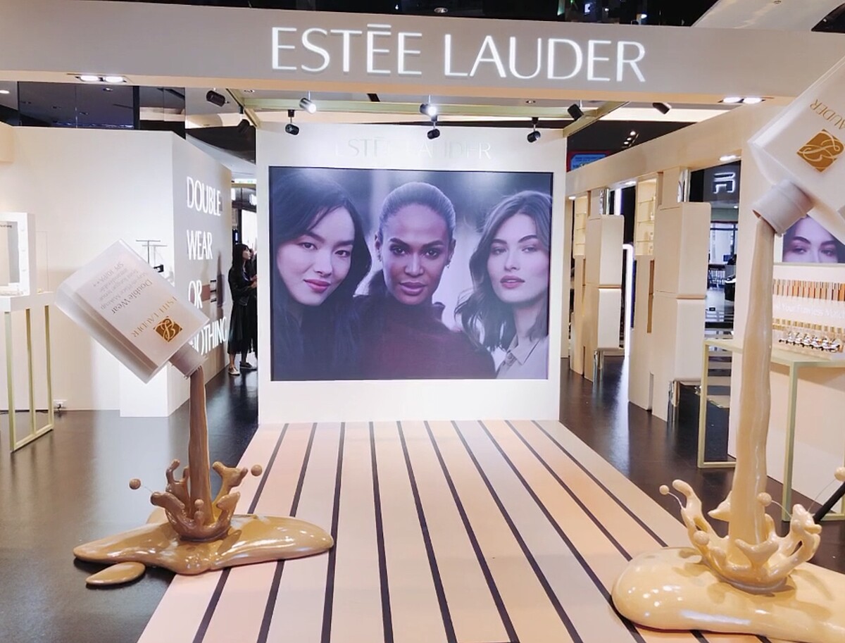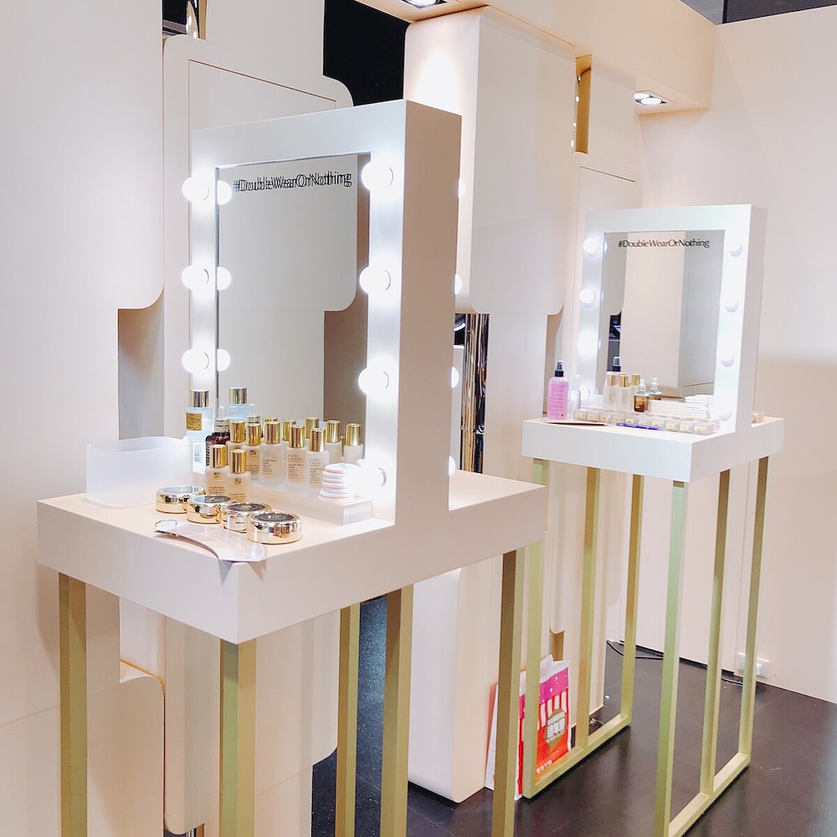 以「NO.1超級粉底-Double Wear」為靈感的快閃店,有完整的16色粉持久完美持妝粉底任你試色,還是想請專業彩妝師為妳指點完美妝容,來到快閃店都能滿足妳的心願!並精心設置多處拍照區,可以盡情拍照打卡,像是粉底瀑布、美妝魔鏡等。