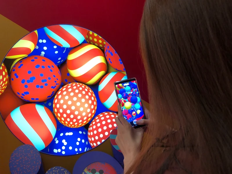 進場前每個人都能領到一支手機,因為這次SK-II運用先進的AR Core技術,發想出多達26種個人化的互動體驗,所以裡面得靠著這支手機掃描會場內的QR圖案,才能感受這些有趣的設計。