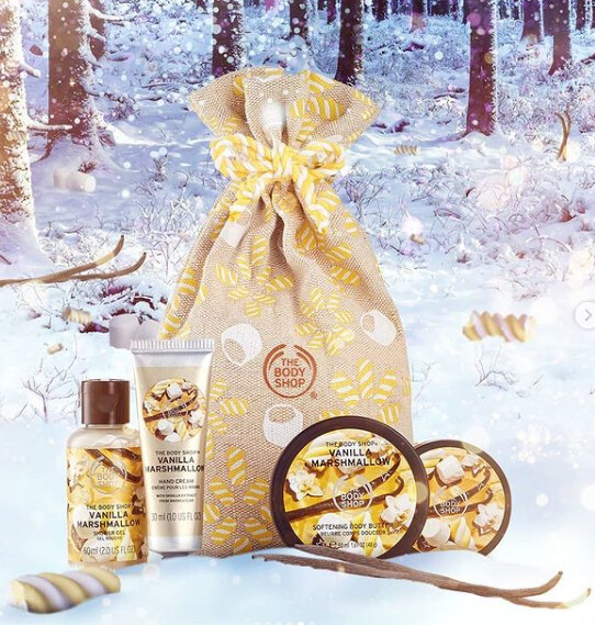 還有冬天最適合的香草棉花糖麻袋禮盒,交換禮物送它好人緣10分滿分10分,包含了香草沐浴膠60ml+香草身體磨砂膏50ml+香草滋養霜50ml+香草護手霜30ml,超級划算,編甜甜推!