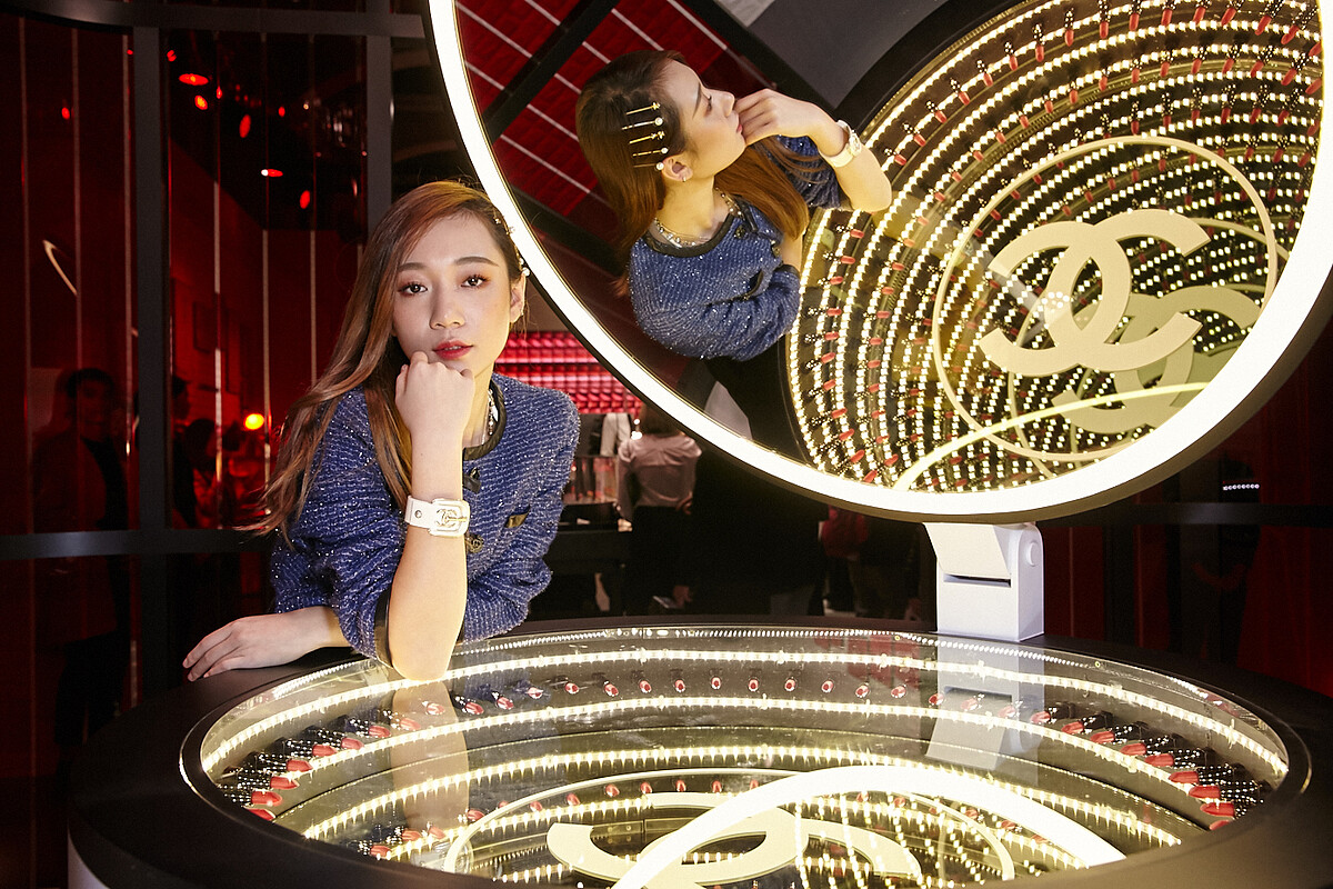 自由試妝區內佈滿了不同深淺濃淡的各式紅色彩妝,邀請每位來賓嘗試全新大膽造型。其中最新推出的「香奈兒超炫耀的極致絲絨唇膏」及「香奈兒超炫耀的柔霧唇釉」提供多種美麗色選,呈獻本季最時尚的柔霧唇妝舒適妝感體驗。