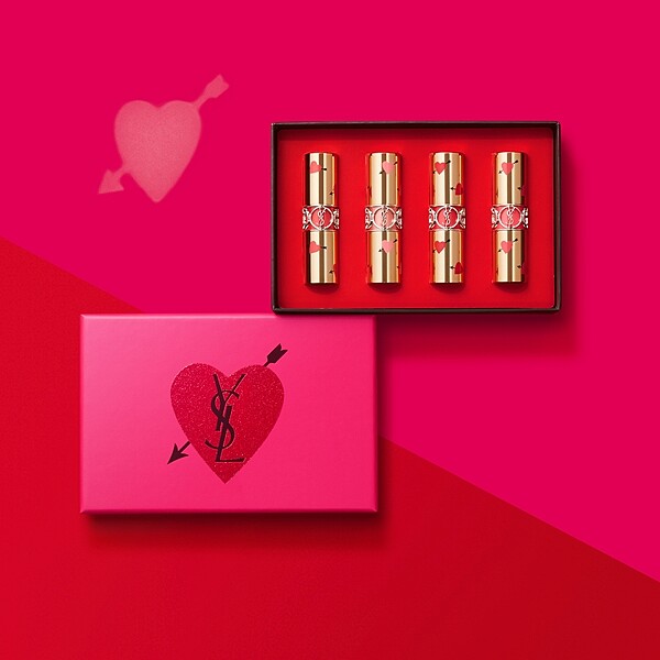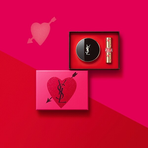 YSL特別為所有戀人精心獻上的「愛很大」年度禮讚YSL邱比特之心禮盒,烙印大大紅色邱比特之心與YSL Logo的桃紅色外盒,共有四種產品內容可選擇:
