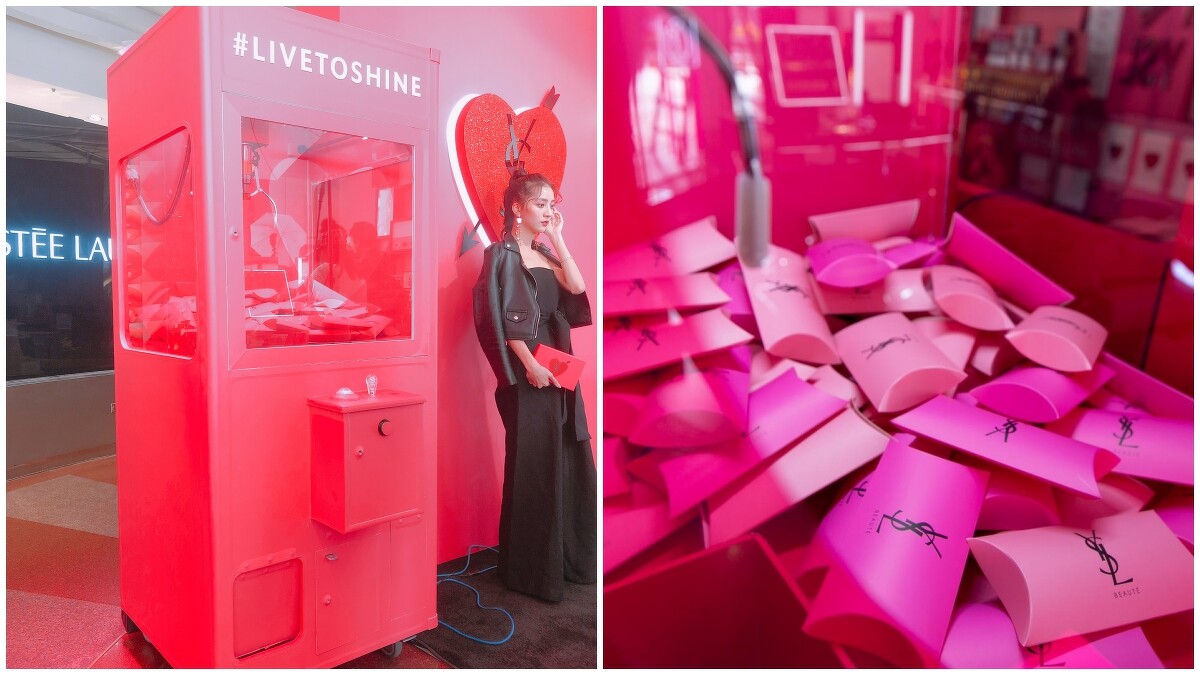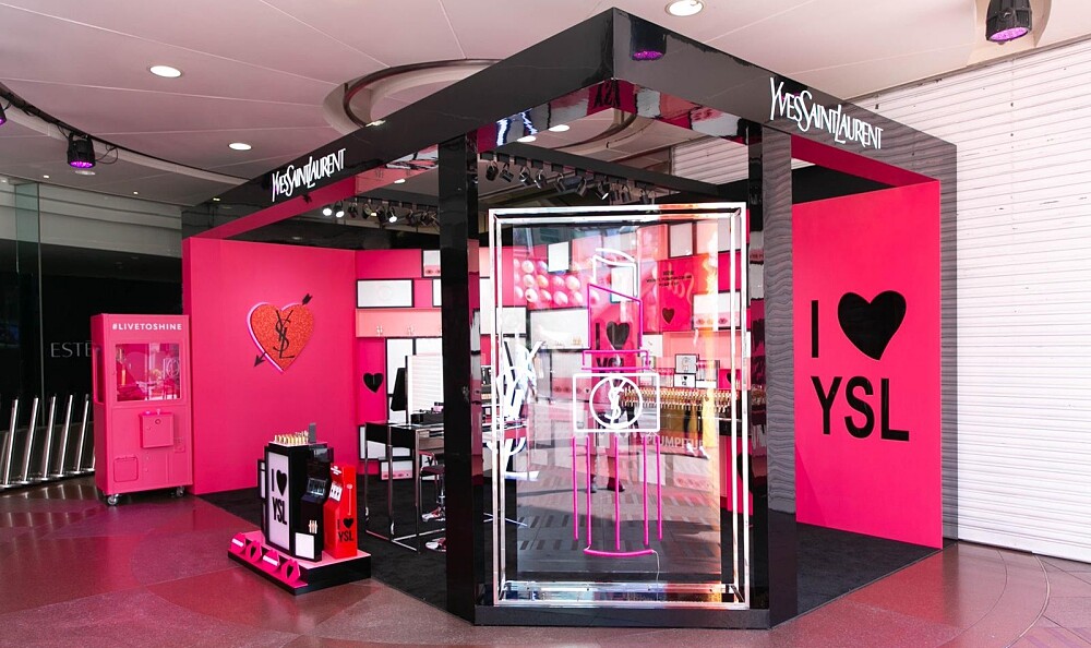YSL於2/12~2/17在台北忠孝SOGO百貨圓型廣場前設立全台唯一、限時6天的「YSL CATCH MY HEART」快閃店,現場不僅陳列今年情人節的邱比特限量版「情挑誘光水唇膏」、4款限量「YSL邱比特獵愛禮盒」,更提供許多專屬服務,包括:唇膏刻字、禮物包裝、情人節卡片、滿額禮、情侶4連拍等。