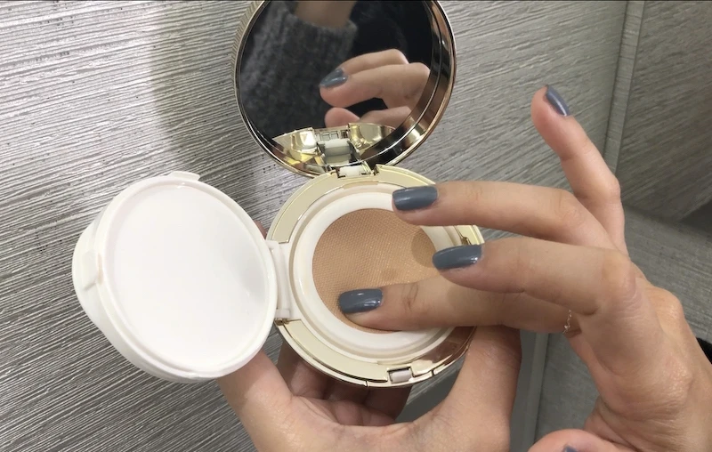 Dior 還特別將防曬BB霜設計成氣墊形式,隨身攜帶補妝相當方便。或是擦完BB霜後,再以氣墊疊擦使用,修飾和潤色效果會更好。平常在外補妝時,會使用粉撲大面積的輕拍,再用手指輕點氣墊來沾取,針對眼周、唇周等局部按壓修補。