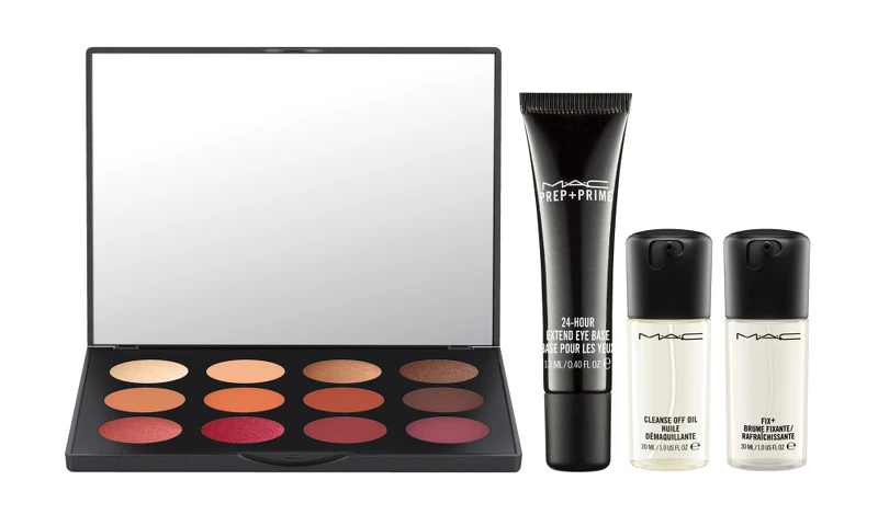 時尚專業12色眼影盤(正貨)+24小時眼影底霜(正貨)+清爽淨妝油30ml+活力水噴霧FIX+30ml,優惠價NT3,280(原價NT$4,180,78折)