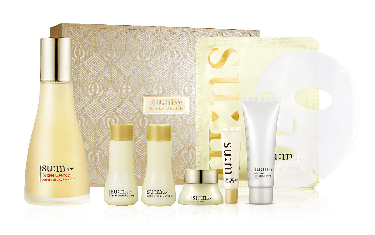 主打「微酵保養」su:m37,崇尚自然的植物發酵成分適合所有肌齡及膚質,和媽媽一起保養最適合了!推薦「青春奇蹟活酵肌秘露禮盒」包括了: