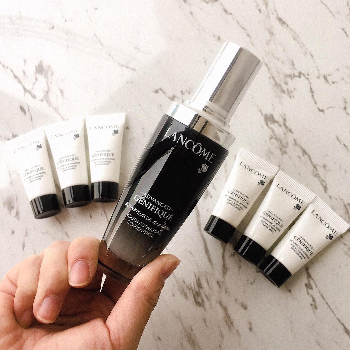 蘭蔻母親節百貨檔期最讓人期待的就是小黑瓶了!首度推出「抗老真年輕金三角組合」《超進化肌因賦活露》、《超進化肌因活性安瓶》與《超緊顏白金淡斑霜》三大經典保養,以近7 折的價格讓妳一次購足蘭蔻明星商品!