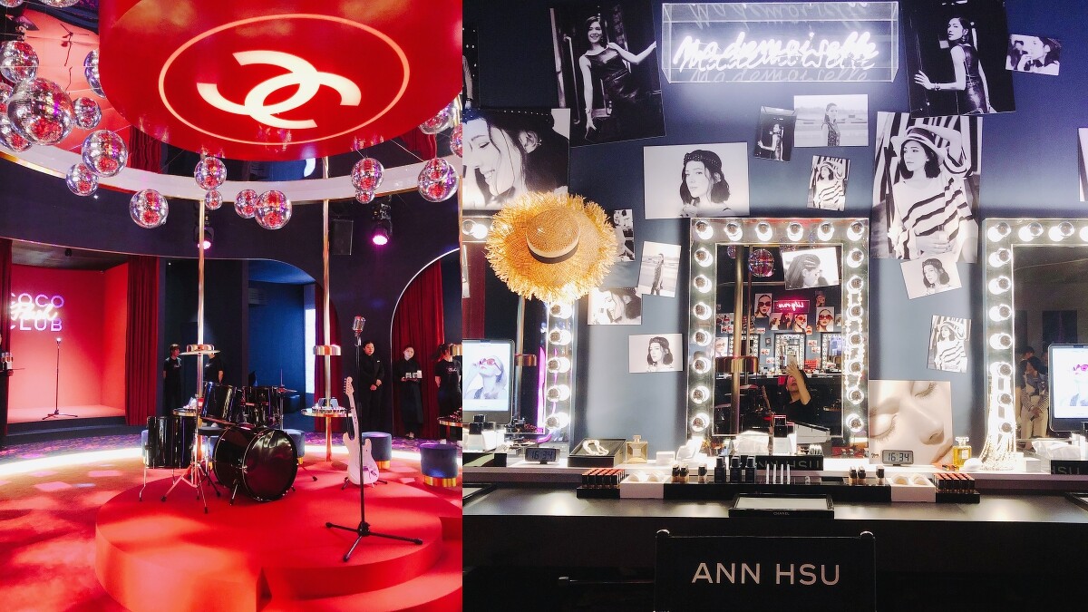 香奈兒 COCO 放閃俱樂部位於松菸文創園區五號倉庫,不過一踏進入口,映入眼簾的卻是一間精心打造的「 COCO唱片行」,有著特製的黑膠唱片牆,後方才是真正的俱樂部場地,非常有巧思。裡頭更規劃了放閃搖滾區、放閃舞池及放閃電影院以及香奈兒COCO晶亮水唇膏專區的巨星秘密後台、自由試妝區、香氛區體驗區等等,內容相當豐富。
