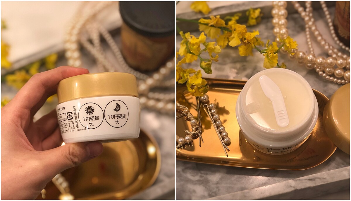 包裝:先來看看外包裝,很簡單易懂的產品名稱及成分,背後也有標記早晚的使用量(日間 1 元硬幣大小,夜間 10 元硬幣大小的用量),打開封膜包裝及盒蓋,內附一支小挖杓。