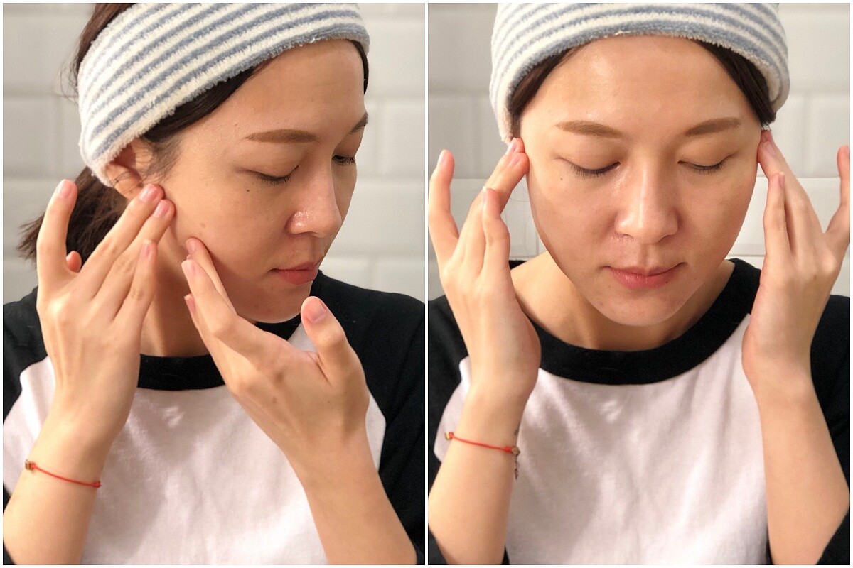 「OZIO 歐姬兒蜂王乳凝露」主打 All in one 的快速保養,試在手上延展性很好,透過簡單的按摩,從眉心往上、眼周下方,笑肌下方往耳朵的方向尾臉部肌膚拉提,透過手部的溫度讓蜂王乳凝露滲透,按摩後,靜待 8 秒讓肌膚完全吸收。