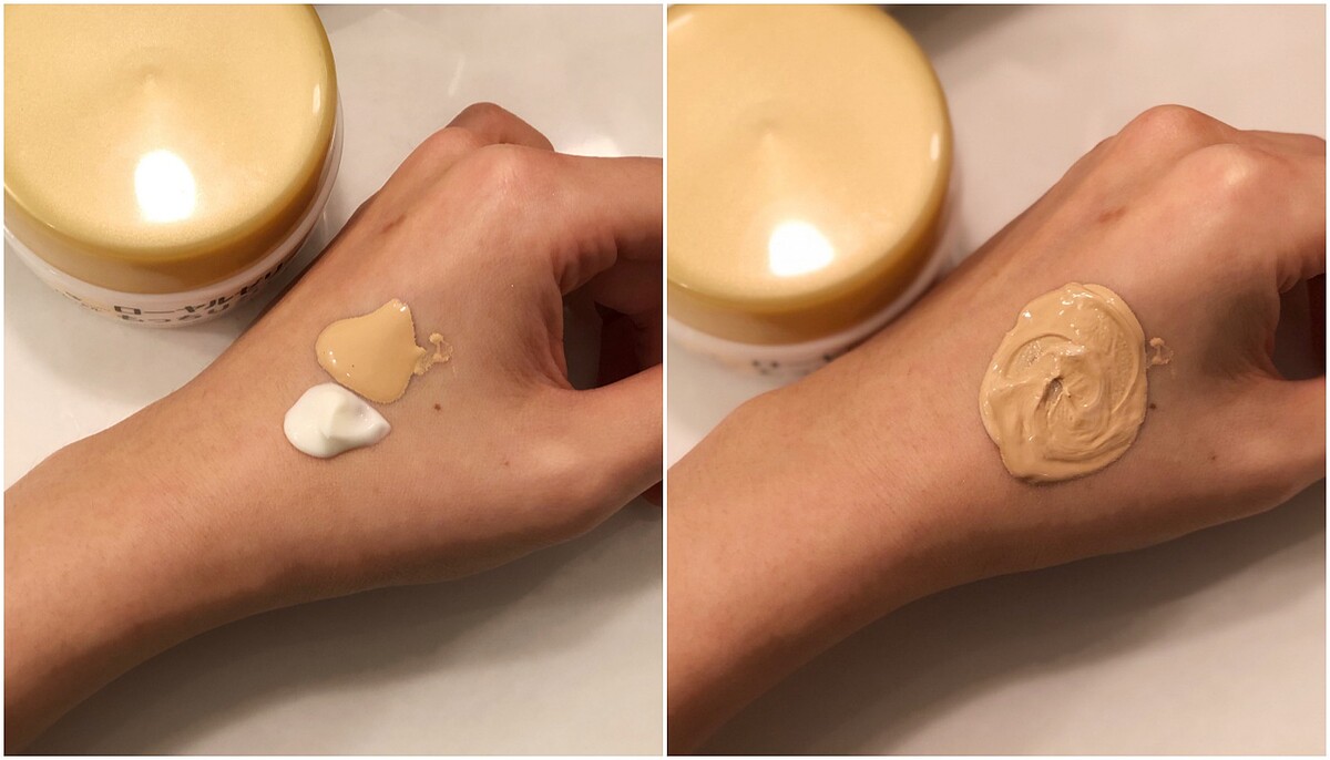 混合蜂王乳凝露後的粉底液會比較好推開,在日光下也會有明顯的光澤感,保水度也足夠,妝感會更服貼喔!