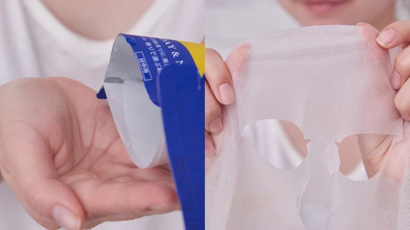 而薄透隱形材質的輕透觸感,服貼保濕不厚重,讓美容液快速滲透肌底。