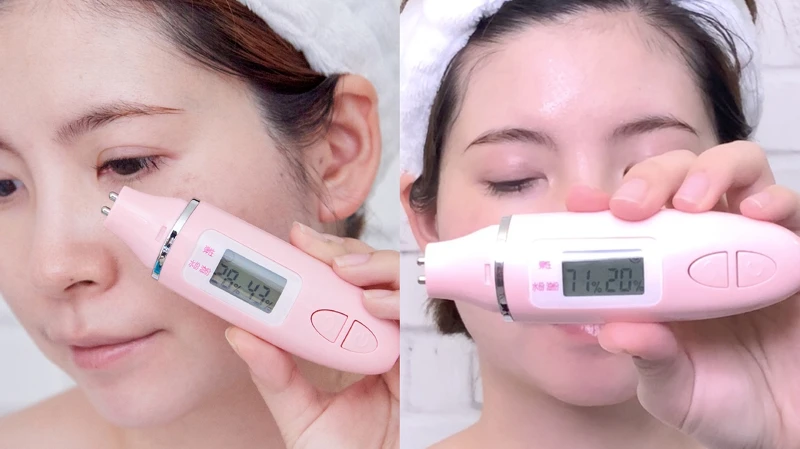 使用前肌膚暗沉粗糙,水分只有28%,也太乾燥了@@ 使用後綻放明亮好氣色,水分飆升71%,而且細緻度也呈現笑臉狀態。