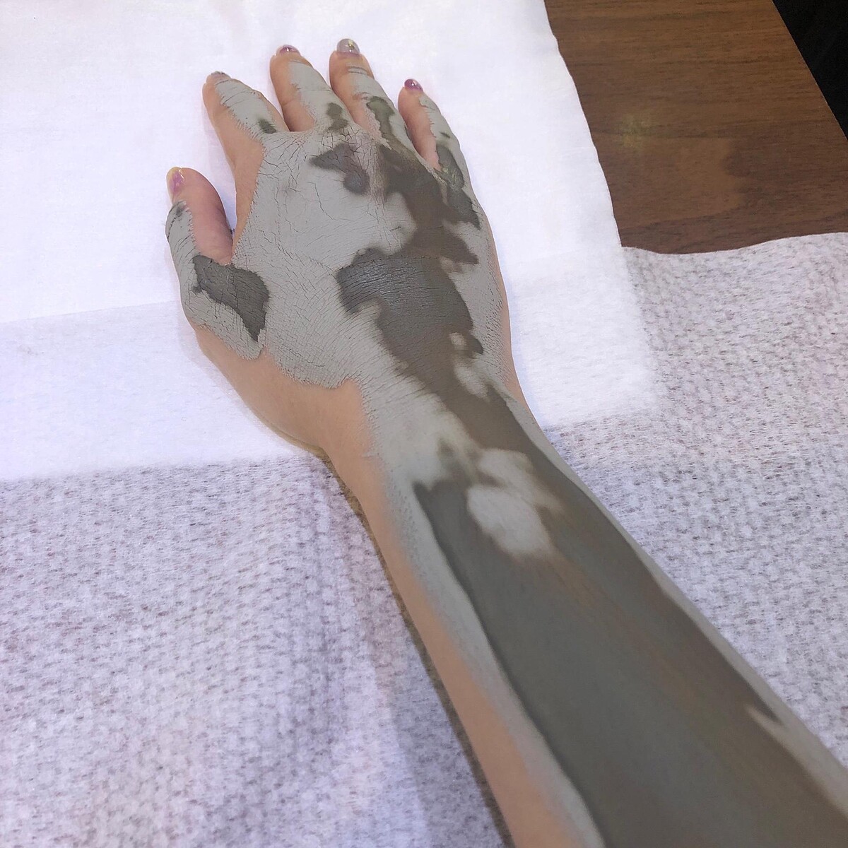 Step 1手部嫩白泥膜護理(使用THREE精萃礦泥膜)