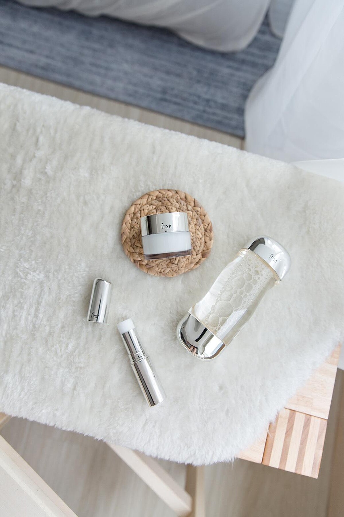 Clio說:「自己兩三天濕敷一次,一個多禮拜就發現痘痘小粉刺都消失了,而且保濕也足夠應付日本的乾燥天氣!」接著再搭配IPSA最經典的「ME濕潤平衡液」讓肌膚平滑透亮度再提升,「IPSA保養品真的會一用就愛上,質地清爽沒有負擔,讓肌膚的質感大大升級。」