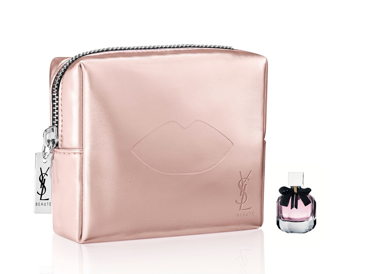 5/10~5/12 在YSL全台櫃點消費滿NT4,500即送粉紅唇形化妝包+慾望巴黎淡香水7.5ml