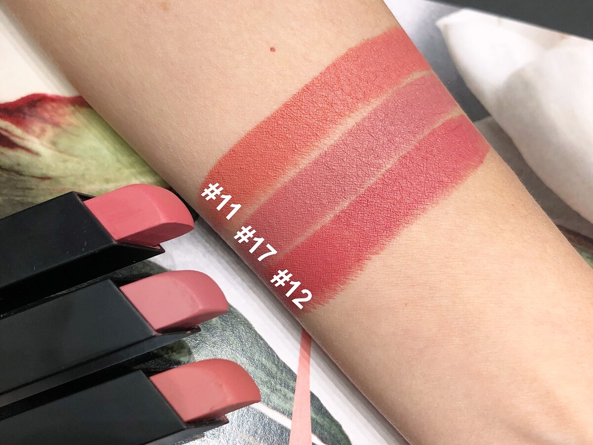 奢華緞面絲絨脣膏熱賣色實擦,從左起依序為:#11、#12、#17。