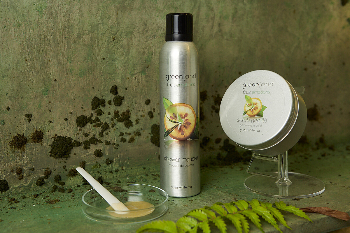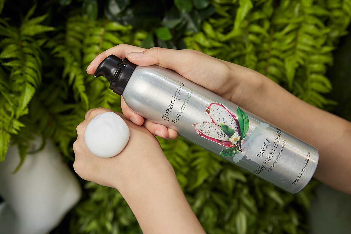 品牌成立近30年推出的無數產品中,最讓創辦人Hans Oosterink 引以為傲、同時也是耗費最多心力的就是沐浴慕斯和身體乳慕斯了!這兩款慕斯的質地特別紮實綿密, 這是來自greenland使用獨家BOV(Bag-on-Valve)專利填瓶技術,瓶身內不含空氣,可延長保存時間,同時也不含危險的推進劑與易燃氣體,360度都各種角度能使用,即使倒著噴也沒問題!