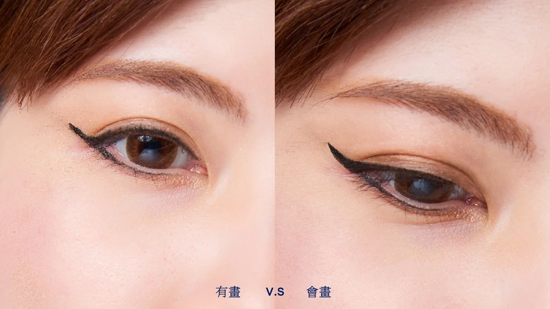 有畫:但眼頭到尾一樣粗,這樣的線條很生硬、沒活力,還容易把眼型的優點給遮住,加分沒有反而扣分啦。