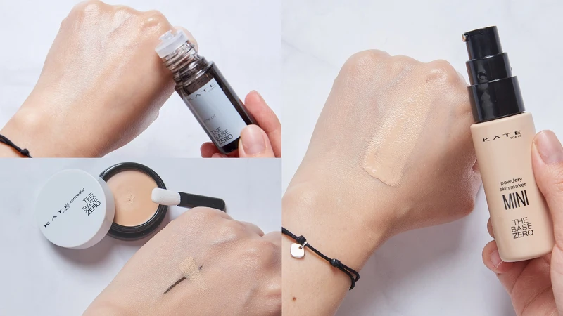 (右)超熱賣的「零瑕肌密微霧粉底液(迷你瓶) #01柔膚色」,有液態粉餅之稱,清爽高遮瑕,迷你瓶旅遊時超好攜帶,夏天用它就對了。