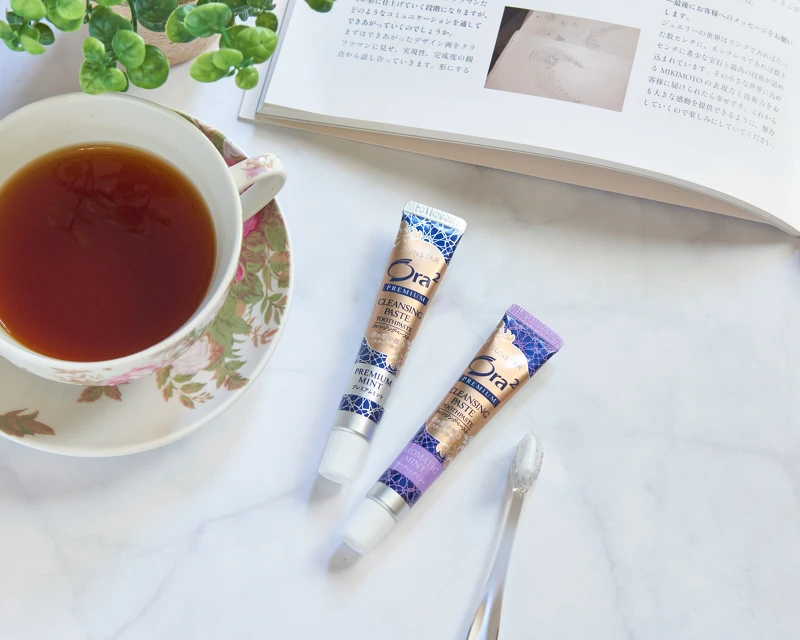 尤其對喜歡喝茶、喝咖啡的上班族女性來說,口腔保養是種基本的禮貌,除了要避免不好的氣味冒出來之外,泛黃的齒漬影響美觀更是巨大,Ora²「極緻璀璨亮白護理牙膏」對日本女生而言已是生活中不可或缺的「口妝品」,省去美白貼片、冷光治療的繁複護理,一週只要刷一次,就能集中亮白,除掉頑固黃漬,Ora²獨家研發的異味吸附功能,還能徹底吸附口臭,維持口氣清爽宜人!今年推出專為女性設計的沁香薄荷口味,換上嶄新的小紫管包裝,趁著休假約會前簡單做個美齒保養,微笑、Kiss都更迷人自信!