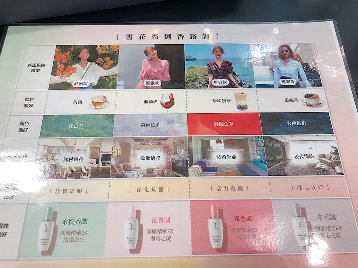 以韓方為基礎的雪花秀,今年推出全新4款不同香氣的潤燥精華EX,將保養融入芳香療法,注入木、花、潤、果、本5種天然香調,透過獨特的聞香諮詢,以及聞香石試聞五款限量香氛,從中挑選出個人喜愛的香氣