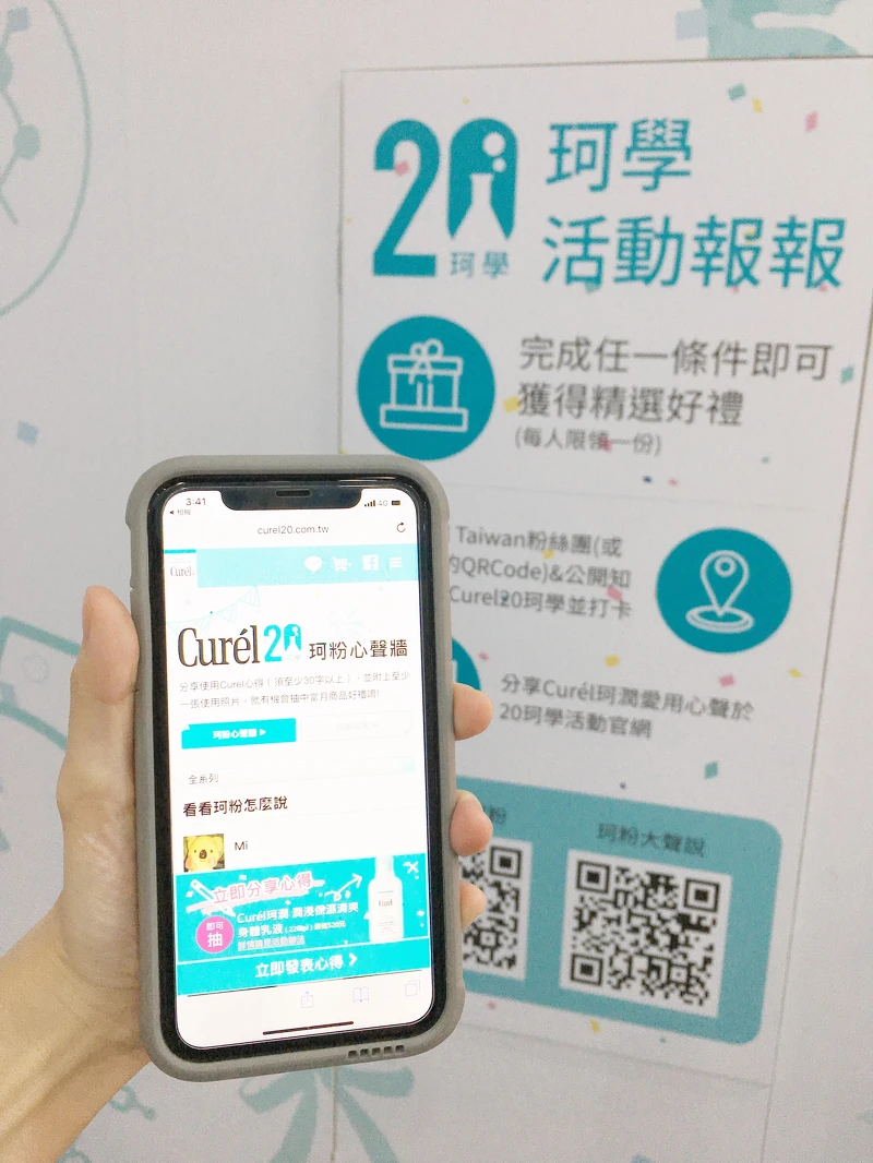 按讚加入Curél Taiwn粉絲團,並公開打卡貼文 #Curel20珂學