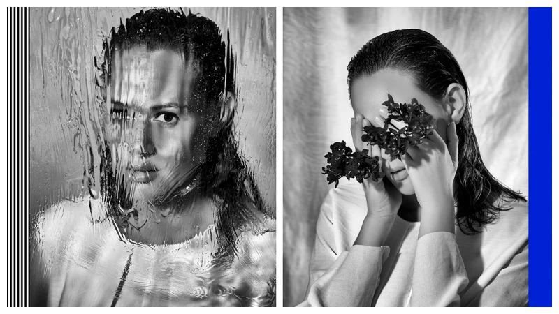 在 Namsa Leuba 的影像作品中,她透過觀者對於光陰印象的形影—亦即他們自身體驗的見證—探索光陰的表現本身。為了完成這個概念,她琢磨黑白攝影技巧以及彩色背景框架交織的影像,凸顯當下此時此刻的表現。這樣的雙重性也直接反映出 Leuba 個人的雙重文化背景。「在發想 Eyes in Focus 主題企劃的時候,我想著墨的是人與人之間潛藏的情緒本質,試圖穿透覆蓋其上的薄紗,」Leuba 說明。透過作品抽象、繽紛的特色,她對比生活當下與記憶留下的足跡。Leuba 為此次和 La Prairie 的合作,製作了三幅彩色框架的影像。