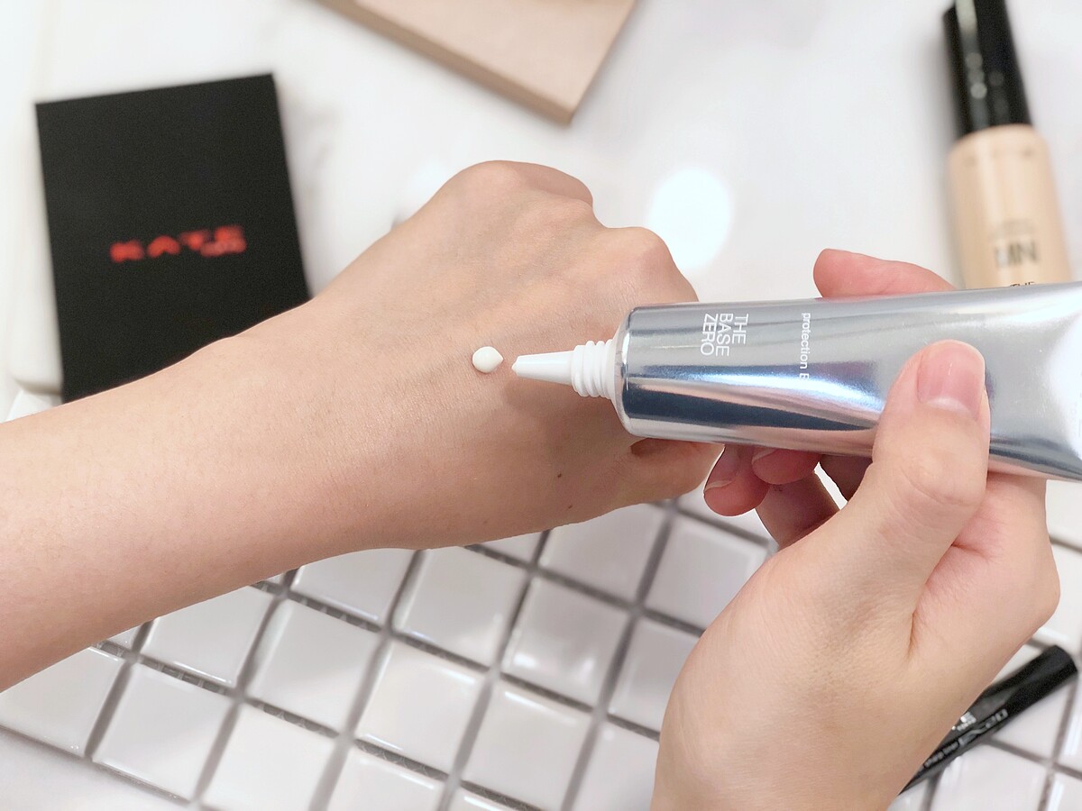 KATE 聽到我們美妝專業戶的心聲,首度推出這款「零瑕肌密高效防曬隔離霜」,外觀包裝呈現科技感的小銀管,具有SPF50+ / PA+++高係數防曬成分,白色半透明的水凝質地,清爽好推勻,一擦便能呈現日本妹及韓妞最喜愛自然光澤感。最重要的是,KATE 零瑕肌密高效防曬隔離霜效果極佳,卻不影響後續粉底液的呈現,完全做好助攻的角色。